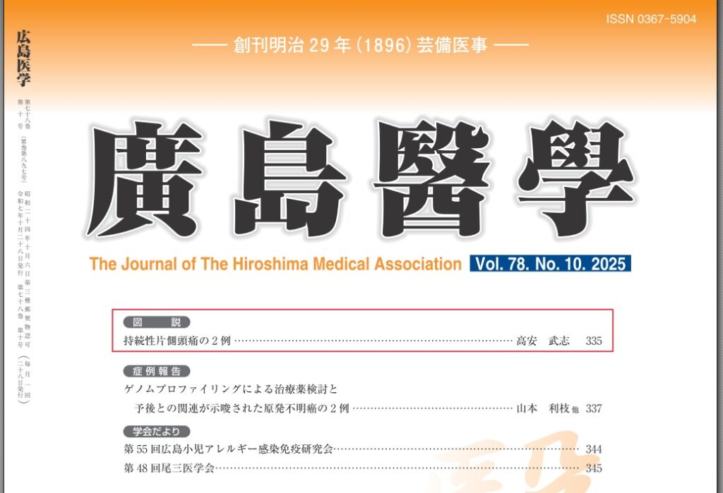 広島医学の図説に投稿し、2025年10月号に掲載されました。